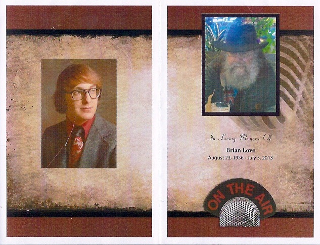 I attended the Memorial for Brian Love at the Auburn Adventist Academy Church yesterday (7.17.13) and recorded the service. (Hear the audio of the first half by clicking here. The 2nd half starting with a recording of Brian is here.) Chaplain Jay Coon of the Auburn Police was at the crash scene and officiated the service. Here is the cover (& back) of the program: