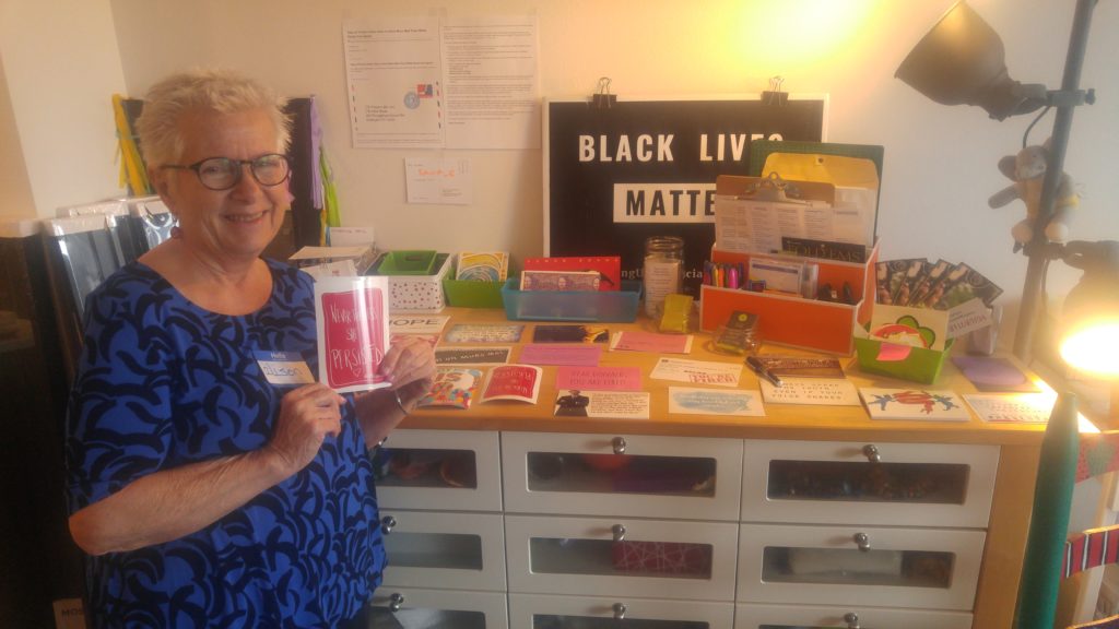 On March 15, 2017, people gathered around the United States to write postcards to the 45th President of the United States, El Caudillo Analfabetico, SCROTUS and let him know what they thought of his first few miserable days in the current position. Ides of Trump it was called, and at the Swinging Angeline, the Greyhound Station (aka: the home of Melissa Tibbals-Gribbin and Alison Tibbals) they were decked out with ALL KINDS of postcards, pens, snacks and background music.