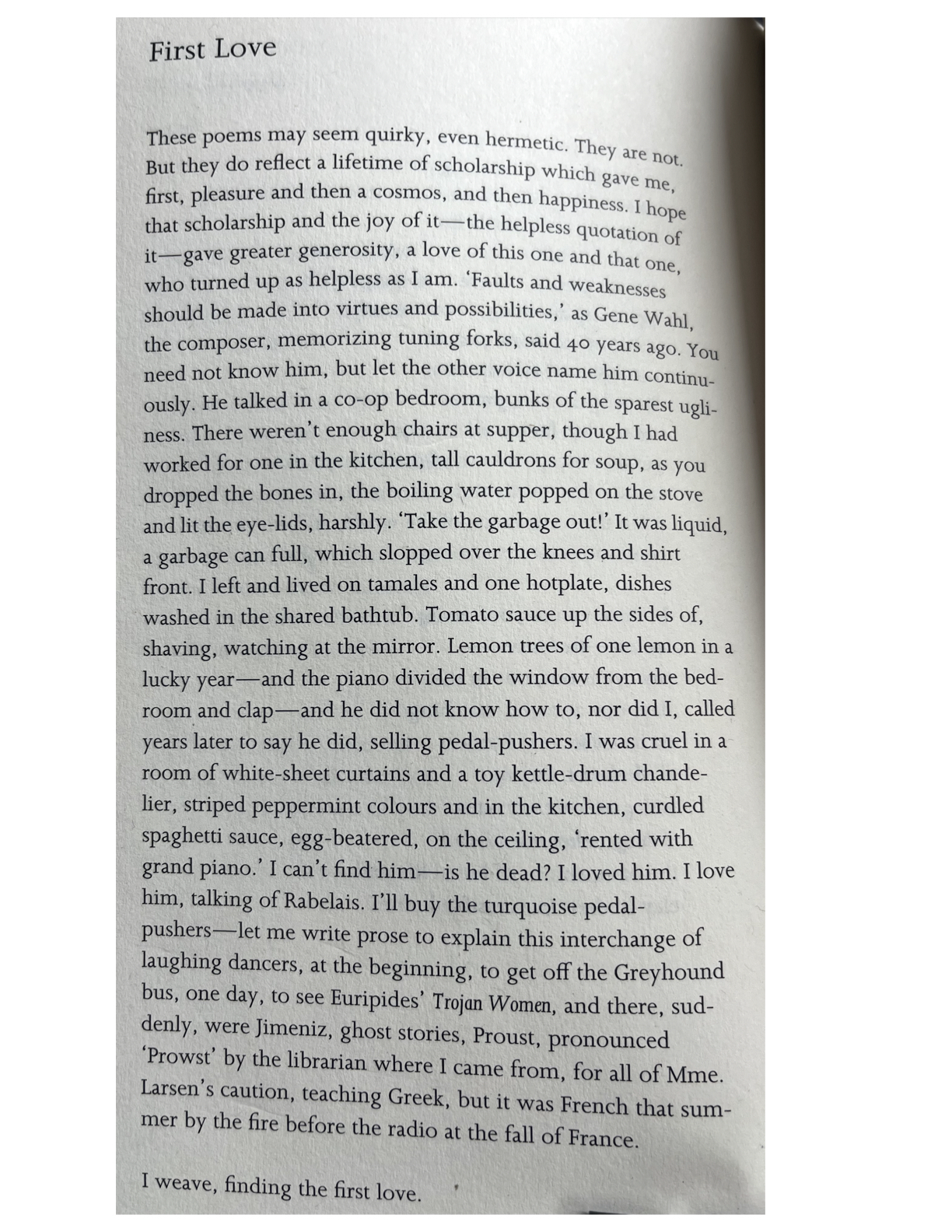 Write: What is more indicative of one’s own personal mythology more than sex? Who we choose to have such relations with, the beauty (or carnage) that comes from that and the memories or wounds that are formed? Feel free to graft from the poem by using a line from it to start your own poem, or write a cover of the poem, or write a poem about a particular occasion (or slew of them). As always, start with a memory or, as Michael would say: “a piece of consciousness” that has energy for you, consider using the warm, elegiac tone of Blaser and see if you can keep it short and pithy. If this topic is too charged for you, remember you are not required to share this or any other writing in the workshop.